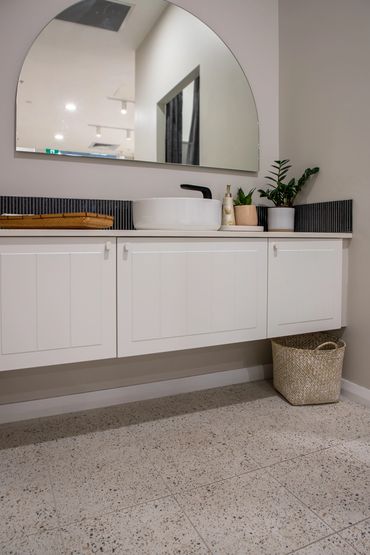 A soft, natural palette was created through the use of colour tone on tone and layering of textures. The warm colour palette has been pulled from nature to give a contemporary, retreat aesthetic, which pair seemlessly with natural materials such as timber and concrete.